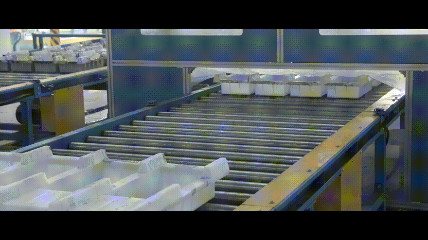 托盤先進入自動鼠籠式翻轉機,使托盤正面朝上,然后由自動輸送線輸送至脫模劑自動噴涂站,通過流量控制可實現脫模劑均勻高效噴涂。再由輸送線進入布料流程,開始循環下循環施工。